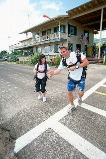 ペアーを組んだインストラクターのJimにベルトを締めてもらい