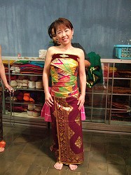 半ズボンなど足を出すのは禁止なので短い人には男性でも布(サロン)を巻かなければならない。