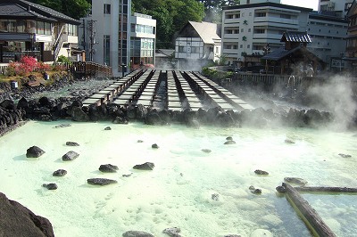 草津温泉の源泉は51度から熱いところでは94度もあり、しかも刺激の強い酸性泉です。