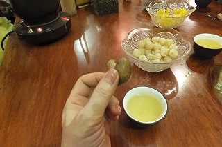 何種類ものお茶の葉の説明をし、何杯も飲んでお腹いっぱい(笑) 椎茸のお菓子が美味しかった~