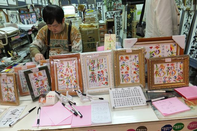 希望する文字を指や道具で器用に書き込み、絵柄を付けて華やかに仕上げます。