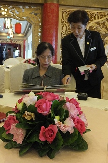 101が見える大宴会場で円卓を囲みます。 さすが秘書 オーダーとるのも慣れてらっしゃる。。。