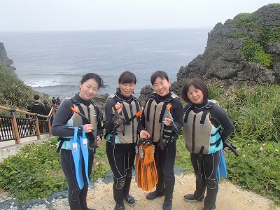 琉球村で青の洞窟シュノーケルツアーの待ち合わせです